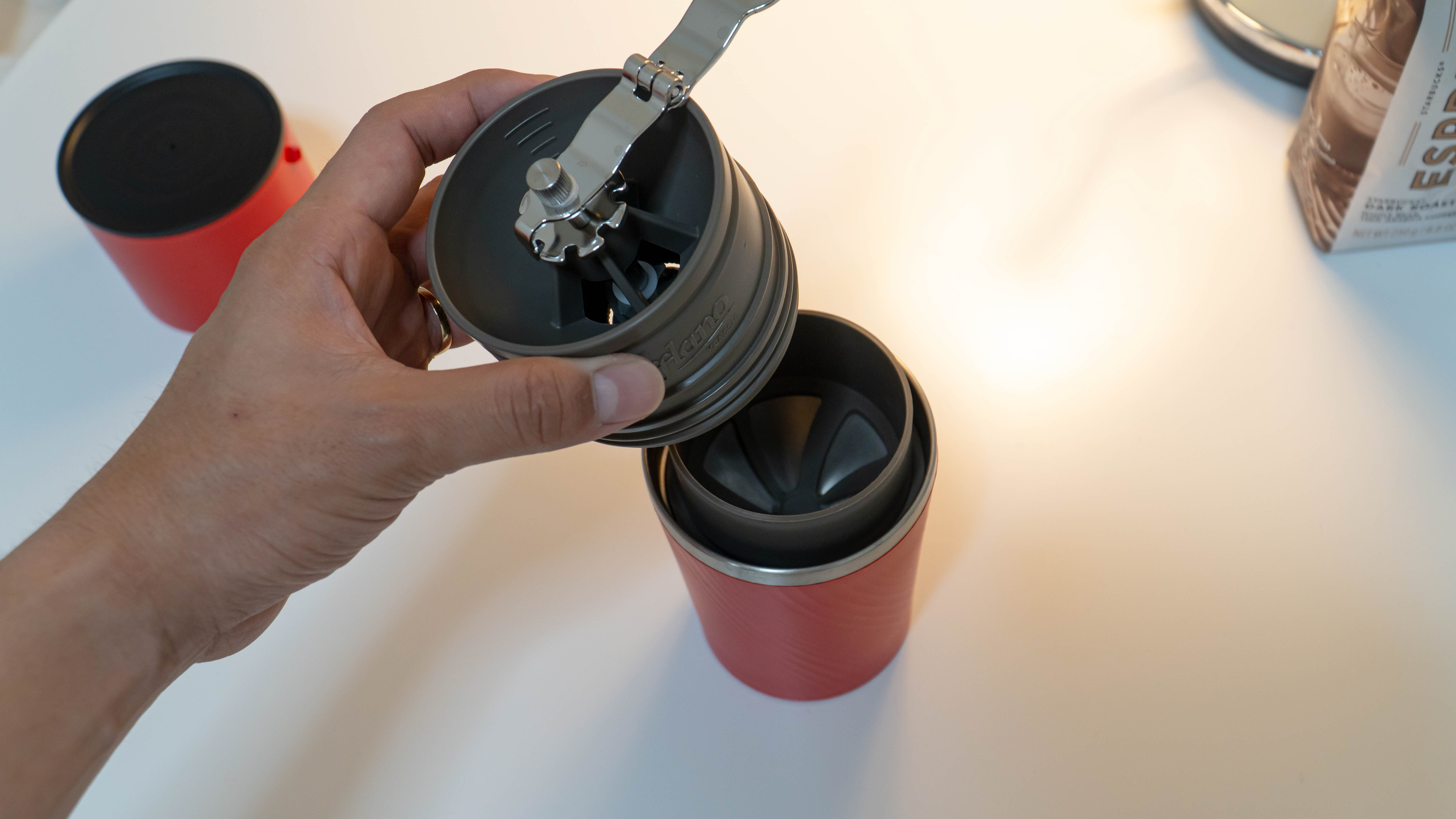 집에서만 사용한다면 뭔가 2%부족하다거나 아쉽다는 생각이 들지 않으신가요? 카플라노 클래식은 휴대용으로 제작되었기에 가방에 넣고다니기도 좋습니다! 거기에다가 커피콩을 소량으로 담아서 가지고 다닌다면 밖에서 신선한 커피향을 느끼며 뜨아(뜨거운 아메리카노)를 먹을 수 있습니다.